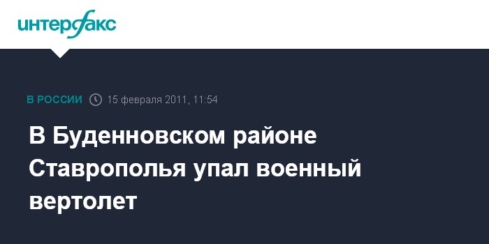 Ростов-на-Дону. 15 февраля. INTERFAX.RU - Военный вертолет потерпел аварию в Буденновском районе (Ставропольский край), сообщили агентству "Интерфакс" в правоохранительных органах регионе.