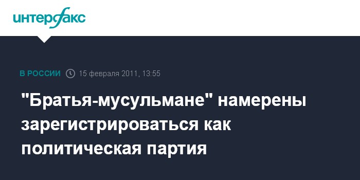 Вашингтон. 15 февраля. INTERFAX.RU - Запрещенное в Египте движение "Братья-мусульмане" намерено подать документы на регистрацию в качестве политической партии, сообщает во вторник американский телеканал CNN.