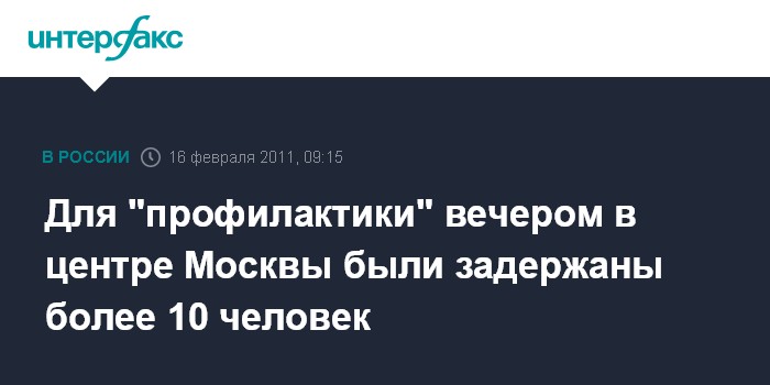 Москва. 16 февраля. INTERFAX.RU - Во вторник в Москве на центральных площадях города были задержаны 11 человек в целях профилактики правонарушений, связанных с незаконным проведением массовых акций, сообщил "Интерфаксу" источник в правоохранительных органах.