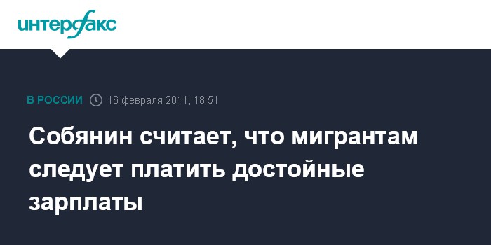 Собянин считает, что мигрантам следует платить достойные зарплаты
