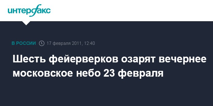 Шесть фейерверков озарят вечернее московское небо 23 февраля