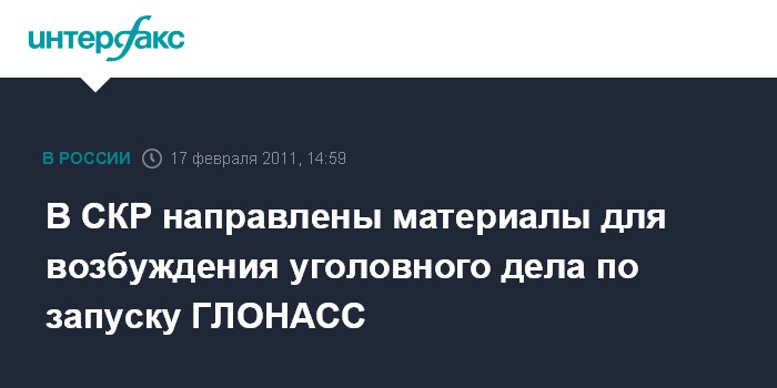 В СКР направлены материалы для возбуждения уголовного дела по запуску ГЛОНАСС