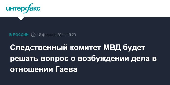 Следственный комитет МВД будет решать вопрос о возбуждении дела в отношении Гаева