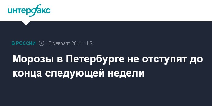 Санкт-Петербург. 18 февраля. INTERFAX.RU - Морозная погода сохранится в Петербурге и Ленинградской области в выходные дни, сообщили "Интерфаксу" в городском Гидрометцентре в пятницу.