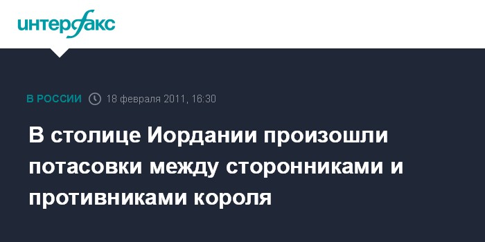 Вскоре под лозунгами "Нашу кровь и наши души мы жертвуем Абу Хусейну (королю Абдалле II - ИФ)", на улицы вышли сторонники правящей в Иордании королевской фамилии. Завязались потасовки, которые быстро были пресечены органами правопорядка. Тем не менее, сообщается о восьми пострадавших.