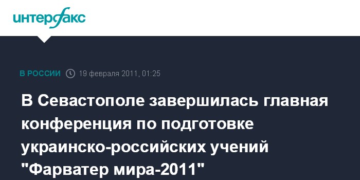 Севастополь. 19 февраля. ИНТЕРФАКС-УКРАИНА - В Севастополе в учебном центре Черноморского флота РФ состоялась главная конференция по планированию украинско-русских учений "Фарватер мира-2011".