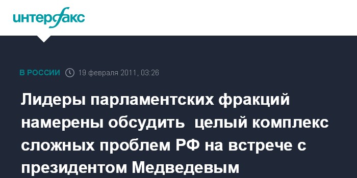 Лидеры парламентских фракций намерены обсудить целый комплекс сложных проблем РФ на встрече с президентом Медведевым