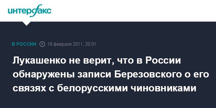 Лукашенко не верит, что в России обнаружены записи Березовского о его связях с белорусскими чиновниками