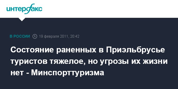 Состояние раненных в Приэльбрусье туристов тяжелое, но угрозы их жизни нет - Минспорттуризма