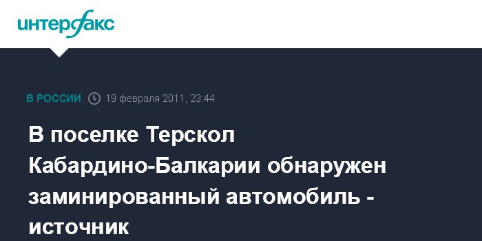 В поселке Терскол Кабардино-Балкарии обнаружен заминированный автомобиль - источник