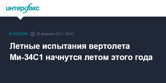 "Первый полет модернизированного вертолета легкого класса Ми-34С1 планируется на май-июнь этого года, после чего сразу начнутся его летные испытания", - сказал "Интерфаксу-АВН" источник в оборонно-промышленном комплексе.