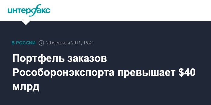 Портфель заказов Рособоронэкспорта превышает $40 млрд