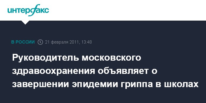 Руководитель московского здравоохранения объявляет о завершении эпидемии гриппа в школах
