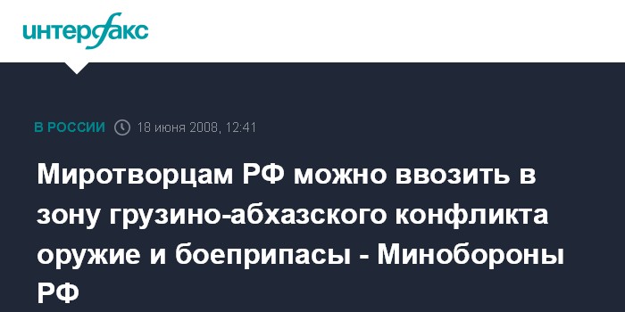 Москва. 18 июня. INTERFAX.RU - В министерстве обороны России опровергли утверждение грузинской стороны о том, что российские миротворцы в нарушение заключенных соглашений пытались ввести в зону грузино-абхазского конфликта запрещенное оружие.