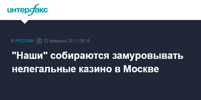 Москва. 22 февраля. INTERFAX.RU - Активисты молодежного движения "Наши" намерены во вторник заблокировать бетонными блоками входы в обнаруженные ими нелегальные казино в Москве, сообщила комиссар движения Мария Кислицына.