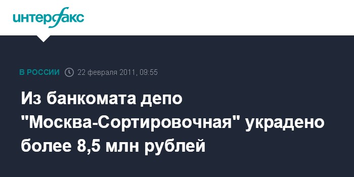 Из банкомата депо "Москва-Сортировочная" украдено более 8,5 млн рублей