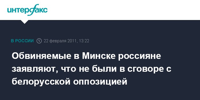 Минск. 22 февраля. INTERFAX.RU - Обвиняемый в участии в массовых беспорядках в Минске 19 декабря гражданин РФ Артем Бреус отрицает, что состоял в сговоре с лидерами белорусской оппозиции, сообщает корреспондент агентства "Интерфакс" из зала суда Московского района Минска.