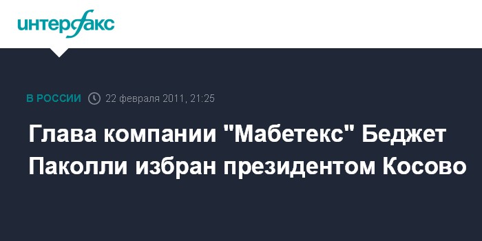 Белград. 22 февраля. INTERFAX.RU - Беджет Паколли, миллиардер, работающий в строительном бизнесе, избран во вторник президентом сербского края Косово, провозгласившего в одностороннем порядке независимость, сообщает сербская телерадиокомпания РТС.