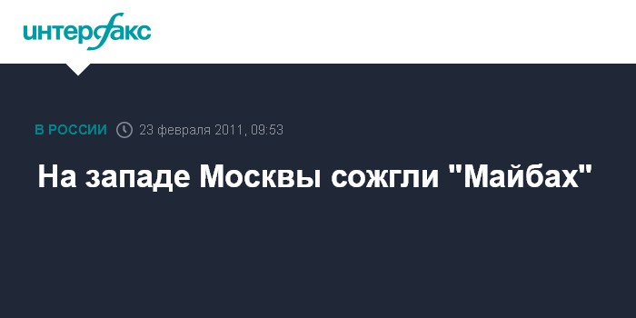Москва. 23 февраля. ИНТЕРФАКС - На неохраняемой стоянке на западе столицы в ночь на среду сгорел дорогостоящий автомобиль "Майбах", сообщил в среду "Интерфаксу" начальник пресс-службы ГУ МЧС по Москве Евгений Бобылев.