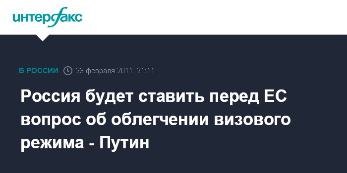 Россия будет ставить перед ЕС вопрос об облегчении визового режима - Путин