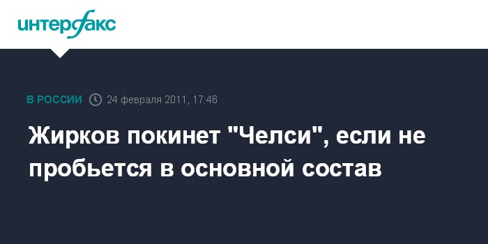 Москва. 24 февраля. INTERFAX.RU - Полузащитник сборной России и лондонского "Челси" Юрий Жирков рассмотрит возможность ухода из клуба, если не сумеет пробиться в основной состав.