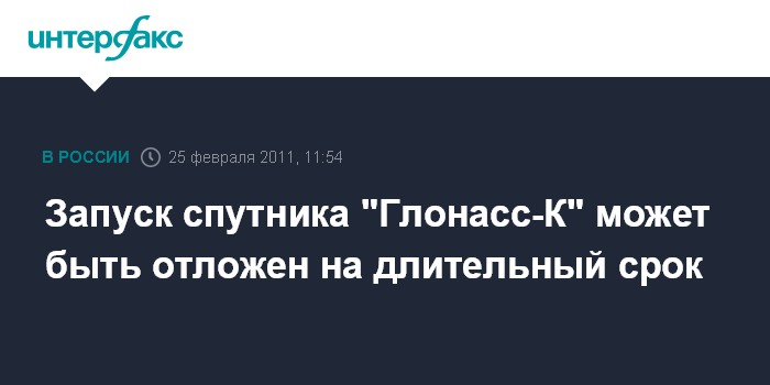 Запуск спутника "Глонасс-К" может быть отложен на длительный срок