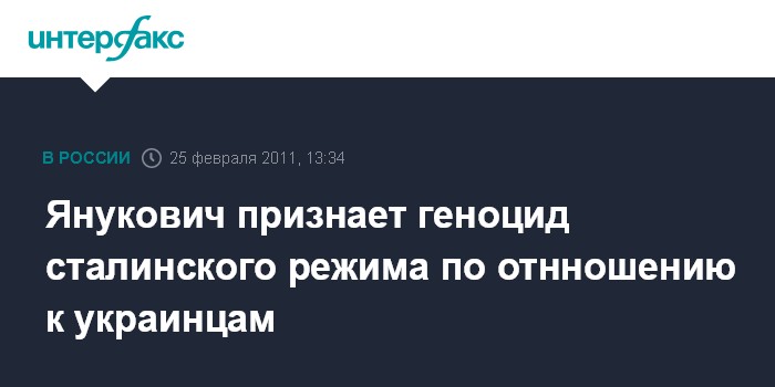 Киев. 25 февраля. INTERFAX.RU - Президент Украины Виктор Янукович вновь заявляет, что Голодомор 1932-1933 годов был организован искусственно.