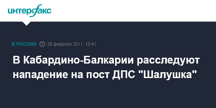 Нальчик. 26 февраля. INTERFAX.RU - В нападении на пост ДПС "Шалушка", расположенный на въезде в Нальчик со стороны Пятигорска, принимали участие четыре человека, сообщил в субботу агентству "Интерфакс-Юг" представитель следственного управления СК РФ по КБР.