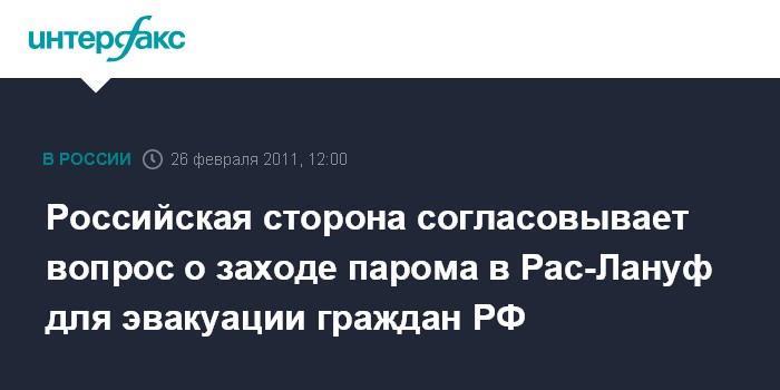 Российская сторона согласовывает вопрос о заходе парома в Рас-Лануф для эвакуации граждан РФ