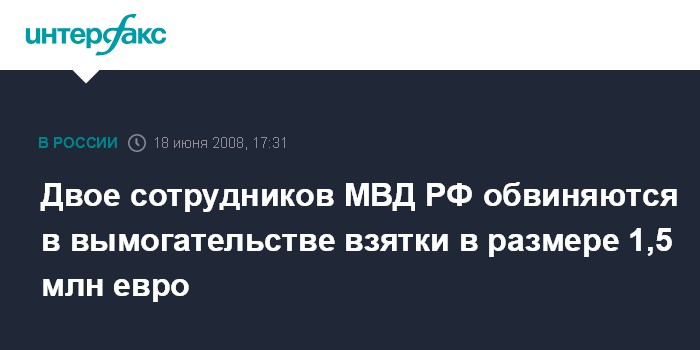 Двое сотрудников МВД РФ обвиняются в вымогательстве взятки в размере 1,5 млн евро