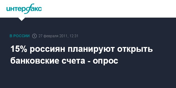 Москва. 27 февраля. INTERFAX.RU - За последние три года в России сократилось число граждан, не имеющих банковских счетов или карточек и не планирующих их заводить, сообщили "Интерфаксу" социологи. В феврале 48% участников всероссийского опроса сообщили об отсутствии у них каких-либо банковских счетов и тем более банковских карточек (40%). Согласно исследованиям социологов, число таких респондентов с 2009 года уменьшилось на 10%. Как показал опрос, сейчас 47% россиян имеют счета в банках (37% три года назад), а 37% пользуются банковскими картами (30%). Еще 15% не имеют счетов, но планируют открыть их, а 13% завести карточку.