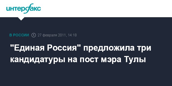 "Единая Россия" предложила три кандидатуры на пост мэра Тулы