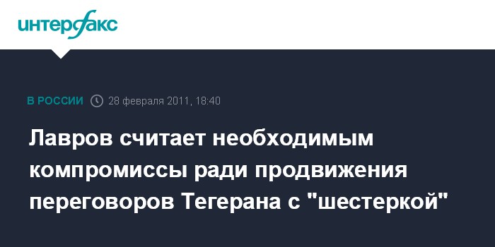 Лавров считает необходимым компромиссы ради продвижения переговоров Тегерана с "шестеркой"
