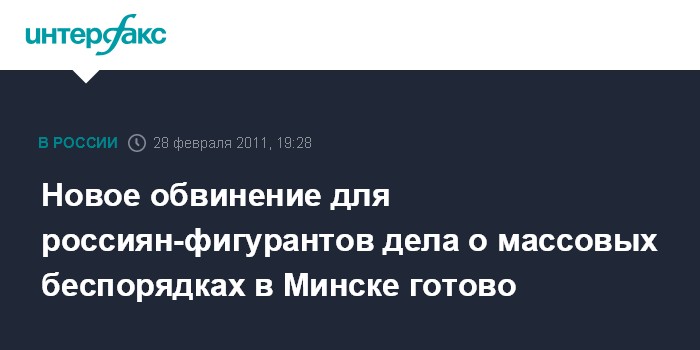 Минск. 28 февраля. INTERFAX.RU - Белорусский прокурор подготовил новое обвинение двум россиянам Артему Бреусу и Ивану Гапонову, которые являются фигурантами дела о массовых беспорядках в Минске 19 декабря.
