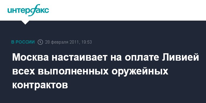 Москва настаивает на оплате Ливией всех выполненных оружейных контрактов