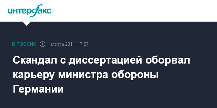Скандал с диссертацией оборвал карьеру министра обороны Германии