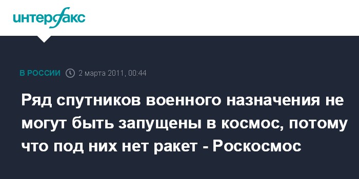 Ряд спутников военного назначения не могут быть запущены в космос, потому что под них нет ракет - Роскосмос