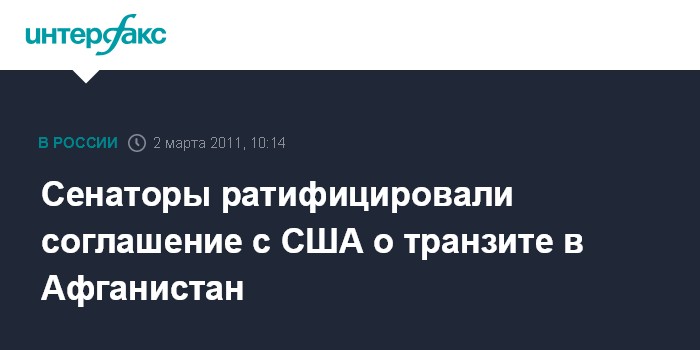 Москва. 2 марта. INTERFAX.RU - Совет Федерации ратифицировал российско-американское соглашение о транзите вооружений, военной техники, военного имущества и персонала США через территорию РФ в Афганистан.