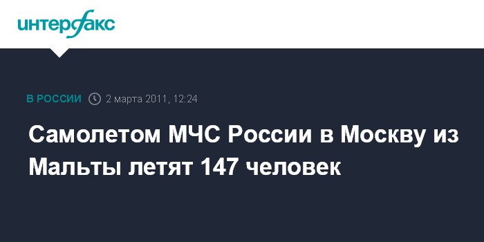 "В 11:35 мск в аэропорт Мальты четырьмя автобусами доставлены эвакуированные из Ливии. В 14:00 запланирован вылет самолета Ил-62 МЧС России из Мальты. На его борту 147 человек, в том числе - 126 россиян", - сказал "Интерфаксу" представитель Управления информации МЧС.