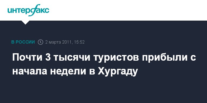 Москва. 2 марта. INTERFAX.RU - На египетский курорт Хургада с 28 февраля прибыли 2,8 тыс. иностранных туристов, заявил египетским СМИ генеральный координатор комиссии по выходу из туристического кризиса Хатем Мунир.