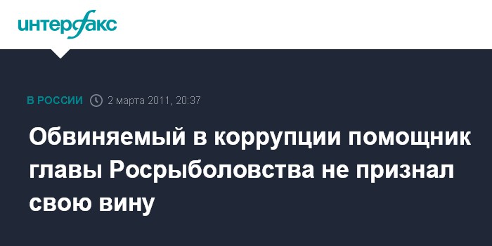 Москва. 2 марта. INTERFAX.RU - Помощник главы Федерального агентства по рыболовству РФ Игорь Бакулин и гендиректор торгового дома "Русские традиции" Александр Васильев, обвиняемые в получении взятки в размере $250 тыс. за квоту на вылов лосося, в суде не признали вину в инкриминируемом им преступлении.