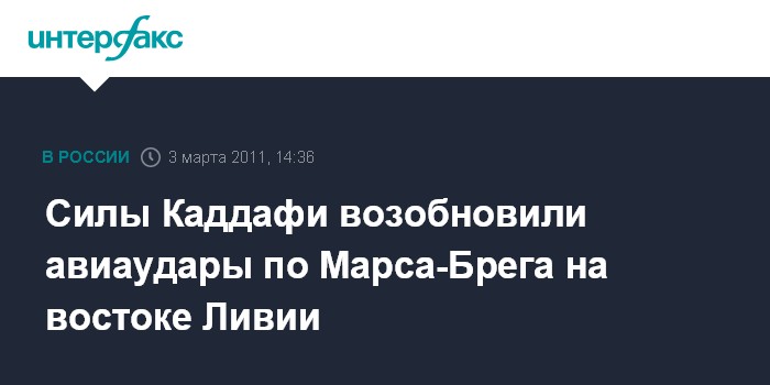 Силы Каддафи возобновили авиаудары по Марса-Брега на востоке Ливии