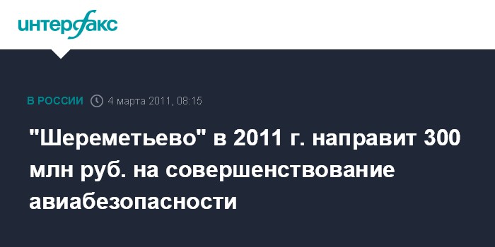 "Шереметьево" в 2011 г. направит 300 млн руб. на совершенствование авиабезопасности