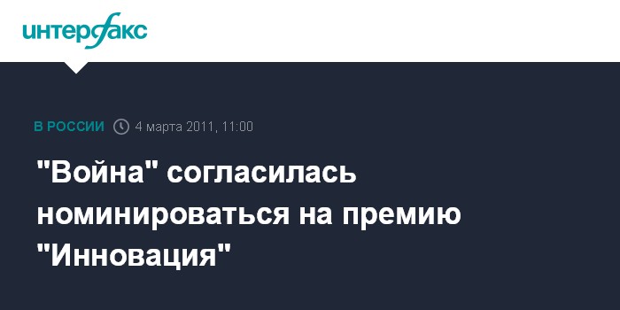 "Война" согласилась номинироваться на премию "Инновация"