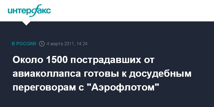 Москва. 4 марта. INTERFAX.RU - Порядка 1,5 тысяч пассажиров "Аэрофлота", пострадавших в результате новогоднего транспортного коллапса, объединились, чтобы пойти на досудебные переговоры с авиакомпанией.