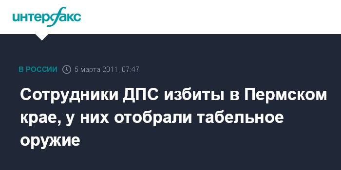 Сотрудники ДПС избиты в Пермском крае, у них отобрали табельное оружие