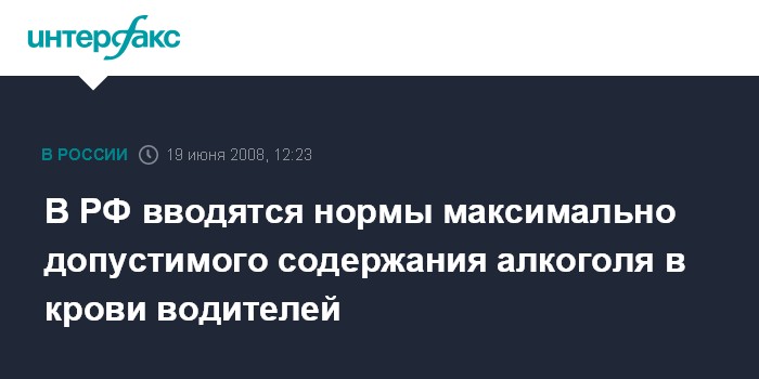 Москва. 19 июня. INTERFAX.RU - C 1 июля со вступлением в силу новых поправок в Административный кодекс максимально разрешенное содержание алкоголя в крови водителя составит 0,3 грамма на литр.