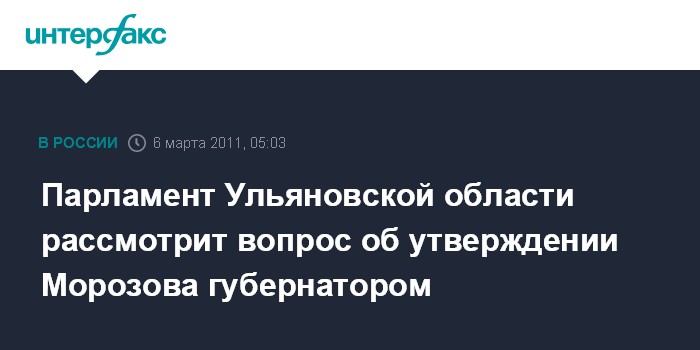 28 февраля президент России Дмитрий Медведев внес на рассмотрение парламента Ульяновской области кандидатуру С.Морозова для утверждения его на должность главы региона.