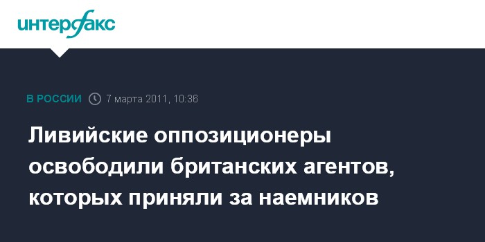 Лондон. 7 марта. INTERFAX.RU - Восемь сотрудников британских спецслужб МИ6 и САС, захваченные ливийскими оппозиционерами в четверг, освобождены, сообщает в понедельник британская газета "Гардиан". По данным издания, британцы были освобождены после того, как из Лондона руководство ливийской оппозиции проинформировали об их личностях.