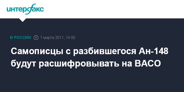 Воронеж. 7 марта. INTERFAX.RU - Предварительные данные расшифровки "черных ящиков" самолета Ан-148, разбившегося в Белгородской области в субботу, будут готовы через 3-4 дня, сообщила "Интерфаксу" в понедельник помощник гендиректора ОАО "Воронежское акционерное самолетостроительное общество" (ВАСО) по связям с общественностью Маргарита Глотова. По ее словам, проводиться расшифровка будет непосредственно на предприятии, при участии специалистов летно-исследовательского института имени Громова.